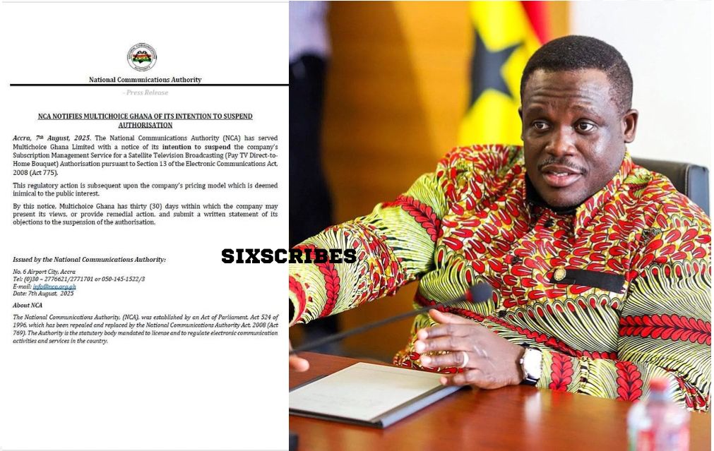 Accra, August 7, 2025 – The National Communications Authority (NCA) has officially notified Multichoice Ghana Limited of its intention to suspend the company’s authorisation to operate its Satellite Television Broadcasting (Pay TV Direct-to-Home Bouquet) service in Ghana.